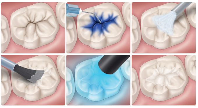 Applying sealant is a simple and painless process. It takes only a few minutes for your dentist to apply the sealant to seal each tooth. The application steps are as follows: